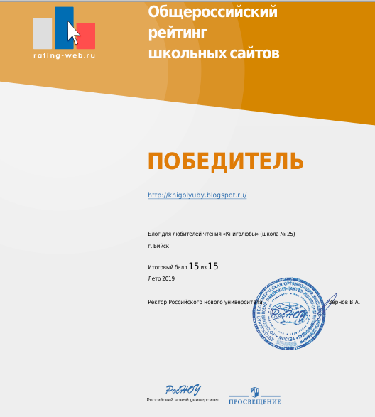 Блоги «Книголюбы» и «Будь грамотным!» набрали 15 баллов из 15 возможных в номинации «Сайты школьной тематики» (все результаты можно смотреть по ссылке).